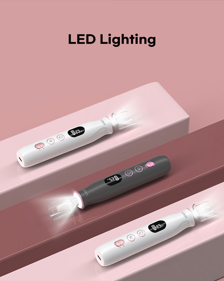 1:360° LED lighting, Lower Noise and Lower Heat: The top of the electric nail filer is equipped with 6 Super-Bright LED lights, providing 360-degree illumination with no dead spots for clear visibility. It features an ABS material shell and an updated motor, which ensures lower noise (<40 dB) and minimal vibration even at the maximum setting, creates a quiet and comfortable experience, making your daily hand and foot care more enjoyable
