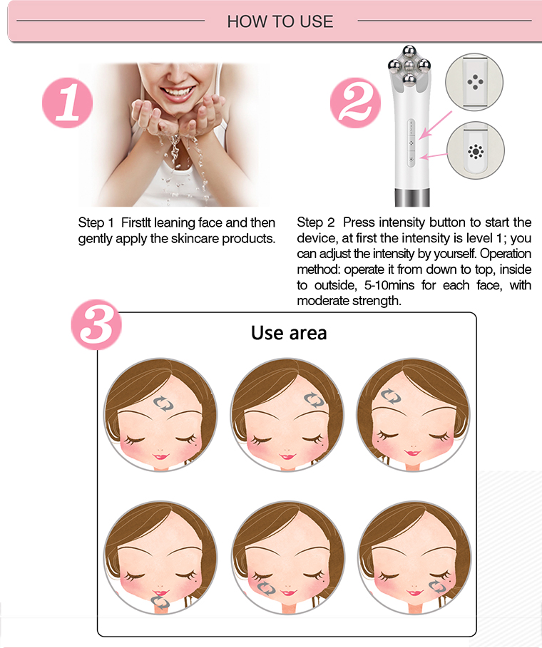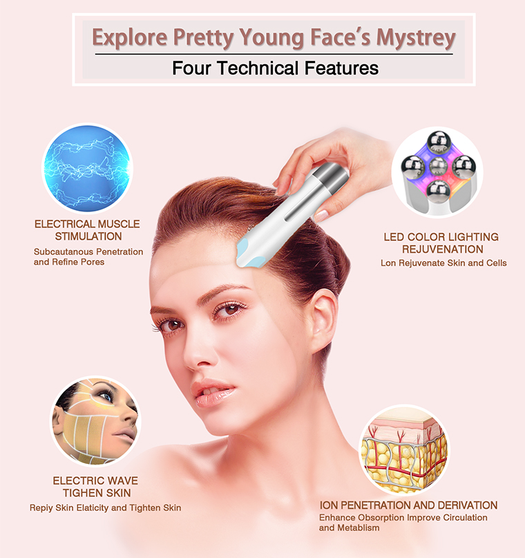 KÕRGSAGEDUSEGA NÄOMASSAAŽ – puhastus-, läbitungimis-, tõstmis- ja silmahooldusrežiimides on kõrgsagedusliku vibratsioonitundega, mis aitab stimuleerida rakkude elujõulisust ja soodustab vereringet. Seega on see tegelikult ka näomasseerija.