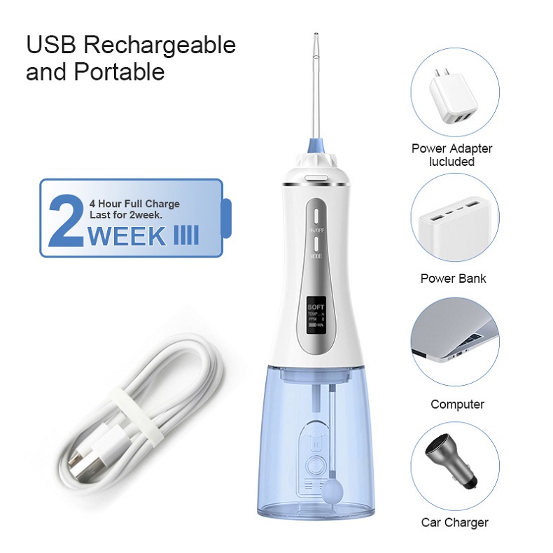 Sellel vesihambaniitil on võimsa keskkonnasõbraliku akuga võrreldes teistega võrreldes kahekordne aku tööiga. Laadige lihtsalt 3 tundi ja nautige 30 päeva kasutamist. See on kompaktne ja kerge, sobib ideaalselt kodus ja liikvel olles. Sellel vesihambaarstil on kaasas USB-kaabel (adapter ei kuulu komplekti), mistõttu on see ideaalne reisikomplekt. Kasutage erakordselt pikka 30-päevast aku kasutusaega, muutes selle teie mugavuse jaoks tõeliselt kaasaskantavaks lahenduseks