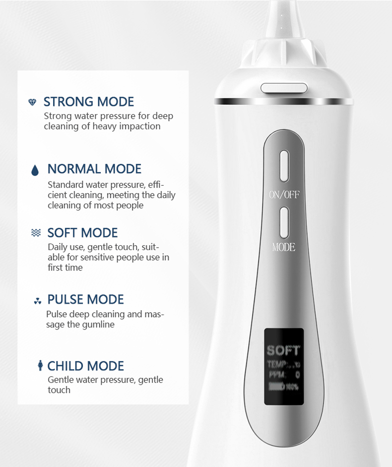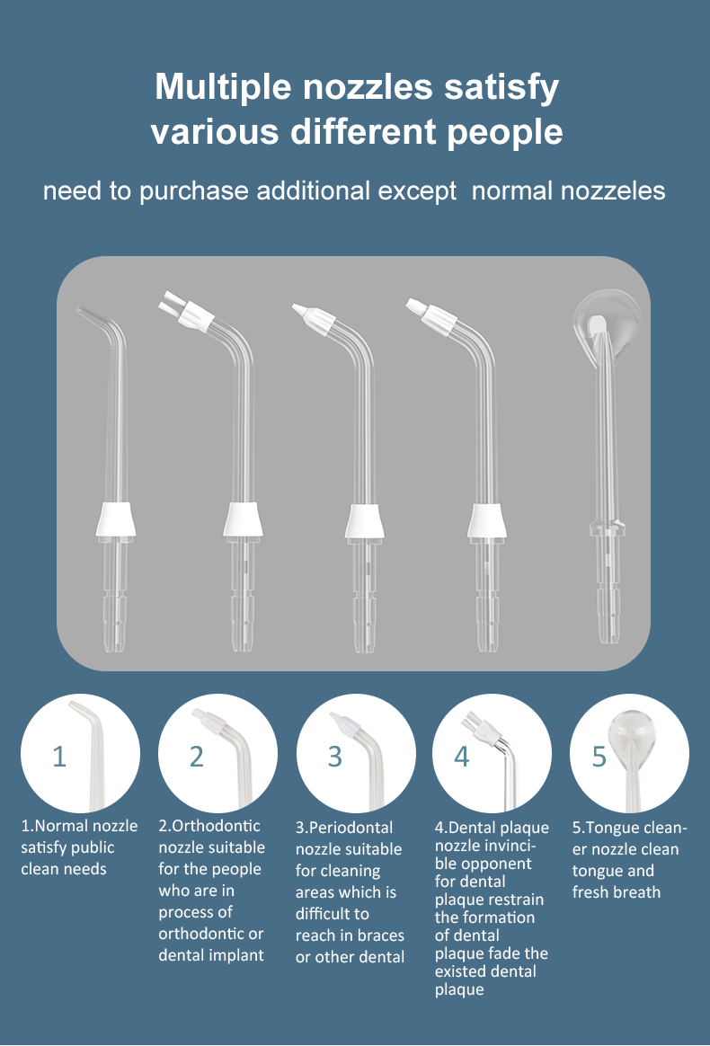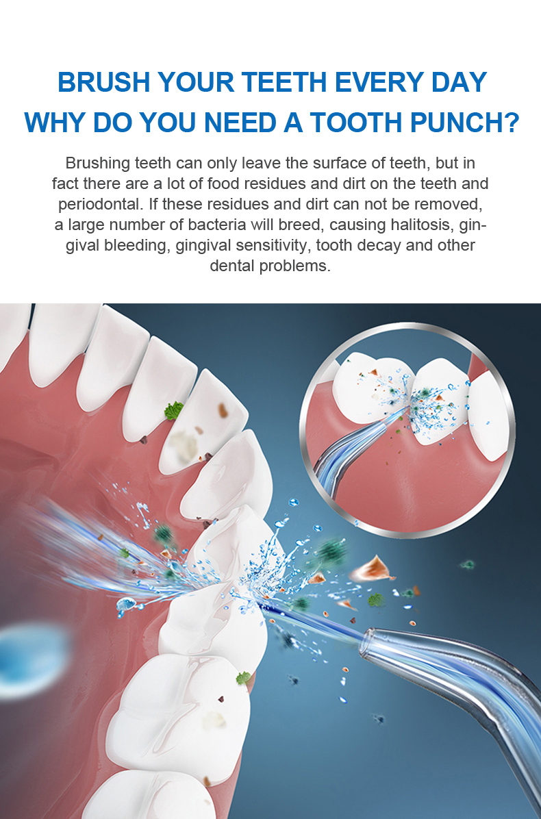 See vesihambakork edastab kõrge veesurveimpulsse 1400–1800 korda minutis, eemaldades tõhusalt 99,9% hambakatust, et hambaid sügavuti puhastada. See vesihambakork masseerib igemeid, soodustab vereringet ja lahendab suuprobleeme, nagu halb hingeõhk, ortodontilised hambad.