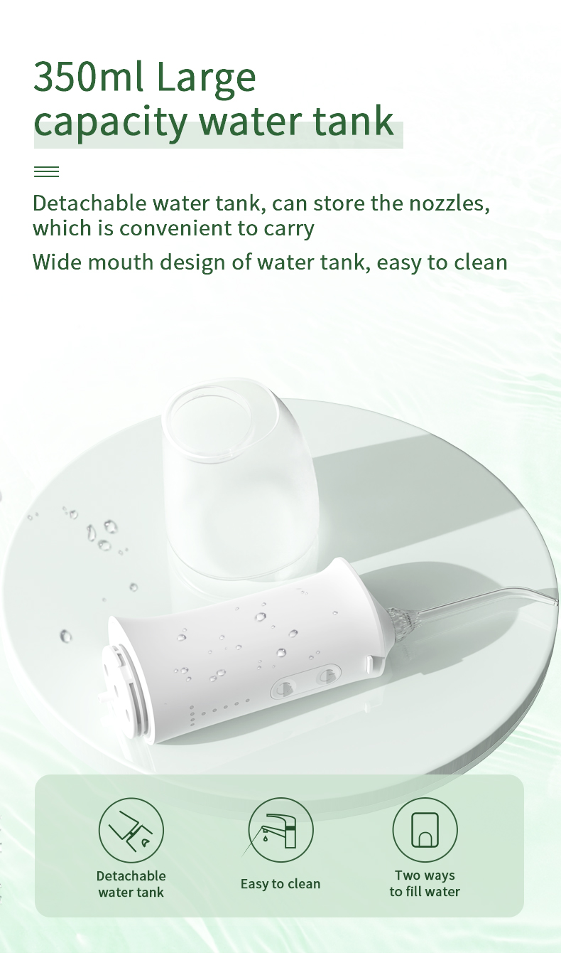 Sellel vesihambaniitil on täiustatud 350 ml veepaak, mis on kaks korda suurem kui teistel vanadel mudelitel, mis välistab vajaduse sagedaste täitmiste järele ning muudab teie suu puhastamise mugavamaks ja tõhusamaks.