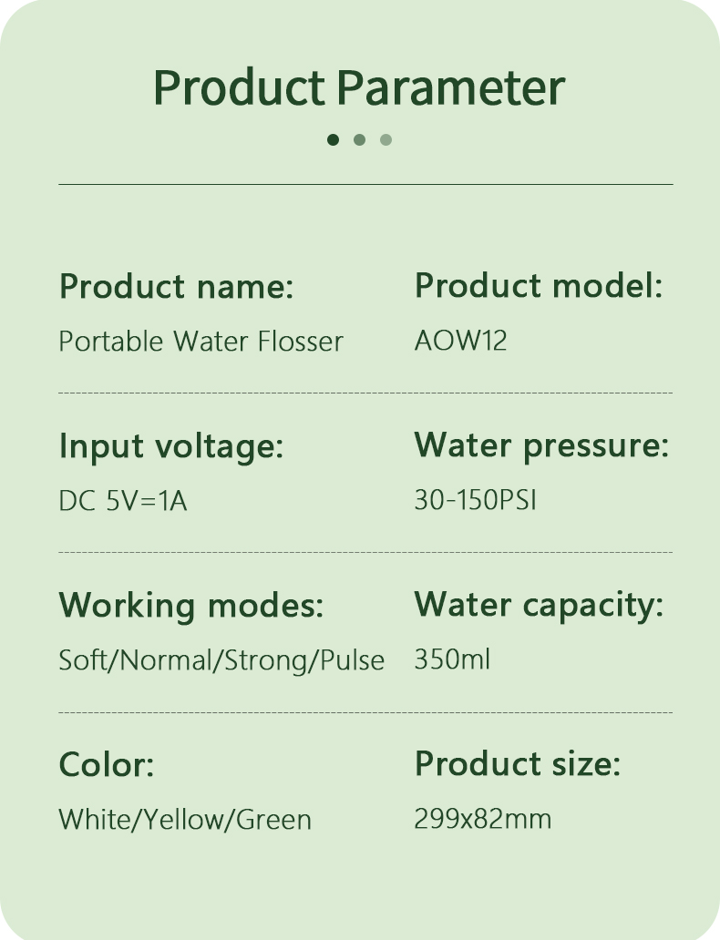 Sellel vesihambaniitil on võimsa keskkonnasõbraliku akuga võrreldes teistega võrreldes kahekordne aku tööiga. Laadige lihtsalt 3 tundi ja nautige 30 päeva kasutamist. See on kompaktne ja kerge, sobib ideaalselt kodus ja liikvel olles. Sellel vesihambaarstil on kaasas USB-kaabel (adapter ei kuulu komplekti), mistõttu on see ideaalne reisikomplekt. Kasutage erakordselt pikka 30-päevast aku kasutusaega, muutes selle teie mugavuse jaoks tõeliselt kaasaskantavaks lahenduseks